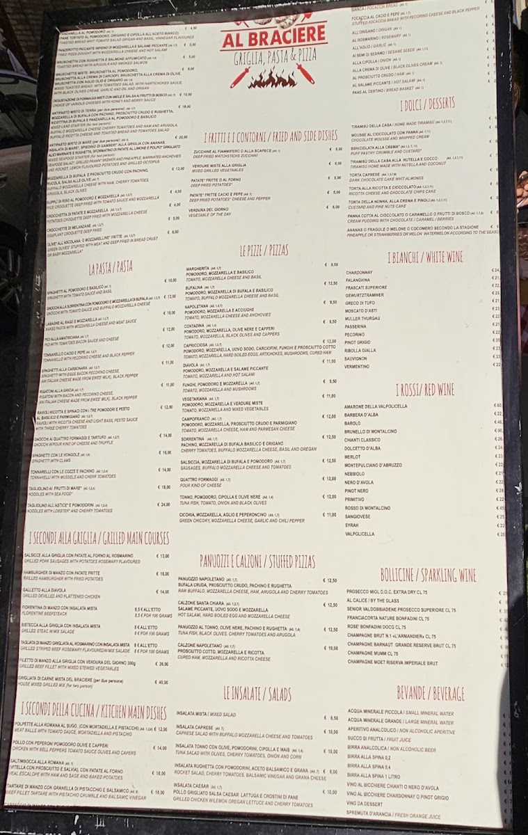 Al Braciere Menu